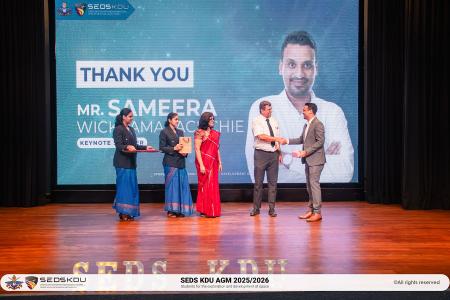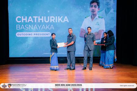 The Annual General Meeting of the Students for the Exploration and Development of Space, General Sir John Kotelawala Defence University (SEDS KDU), was successfully held on the 15th of August 2025 at the Faculty of Graduate Studies Auditorium. The event brought together faculty members, distinguished guests, and students to celebrate the past year’s accomplishments and to welcome a newly appointed Executive Committee and Divisional Leads for the term 2025/26.
