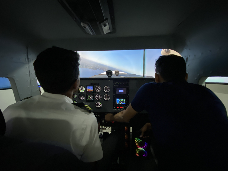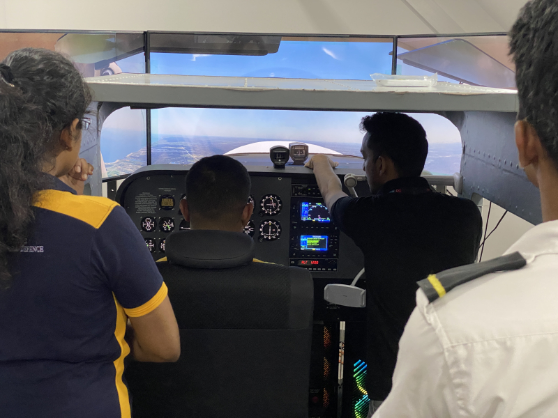 The simulator sessions were designed around the Cessna 172, one of the most widely used training aircraft in the world. Students were introduced to aircraft-related general knowledge, gaining a detailed understanding of the control surfaces and their roles in maneuvering the aircraft as well as instruments within the cockpit. Further, they were enlightened about the powerplant and insights into the legally required documents to be carried onboard during flight operations were also shared.